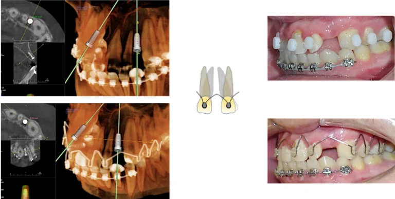 Konieczne było przeprowadzenie translacji oraz rotacji korzeni zębów sąsiadujących z luką zębową
